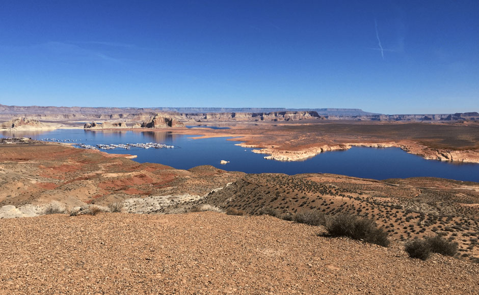 レイクパウエル展望台またはグレンキャニオンダムビジターにてレイクパウエルの写真撮影後、ホテル到着 |