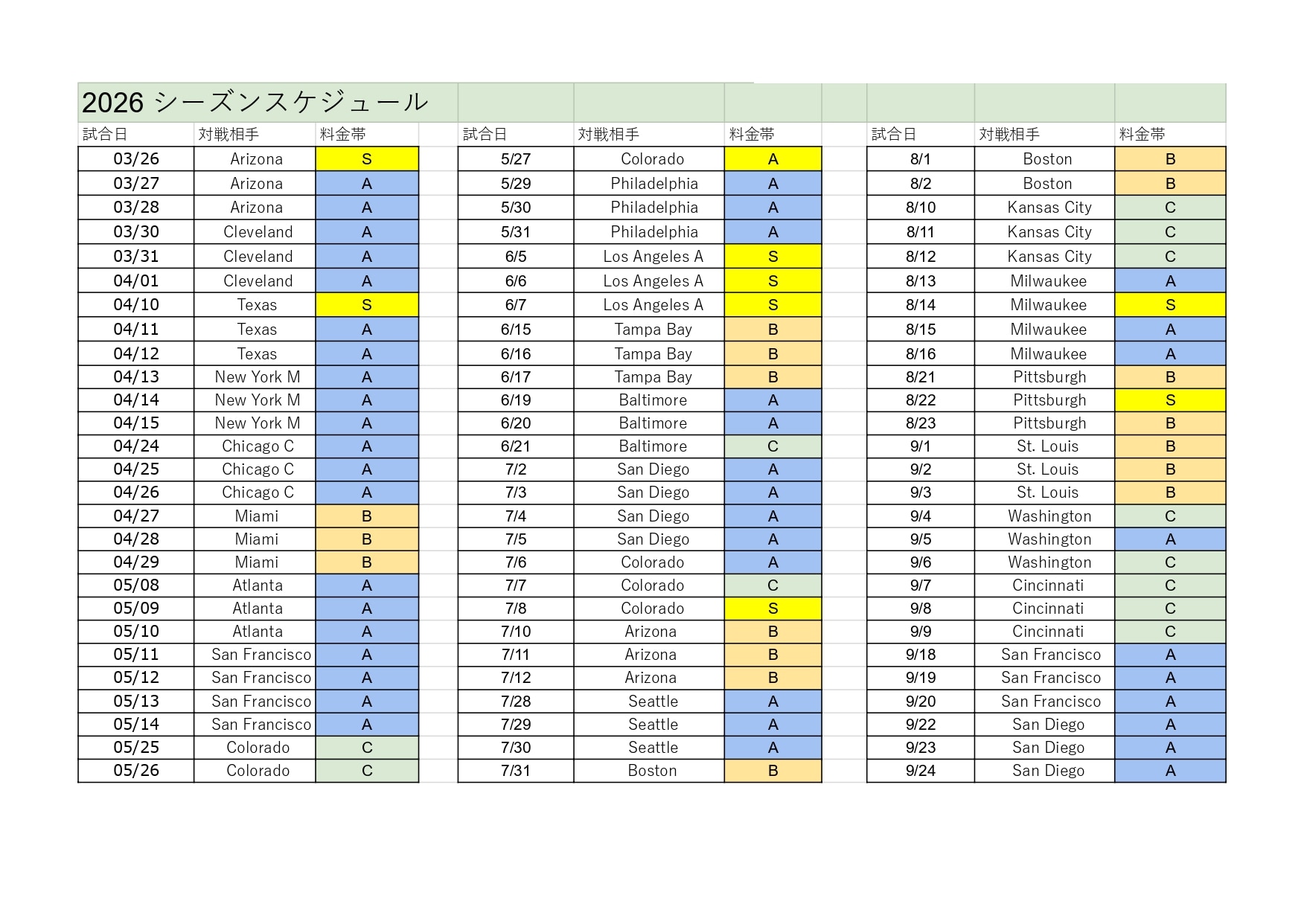 ■当プランはS料金帯料金プランです。(試合日程は当ページ上部の商品画像:2026 シーズンスケジュールを参照下さい。)