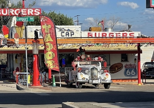 ルート66の町セリグマンで休憩(約20分) ★ルート66を復活へと導いたエンジェルさんのギフトショップに立ち寄ります(休業の場合は他のお店にご案内いたします)。 ※昼食は車中でサンドイッチ等と飲物 |