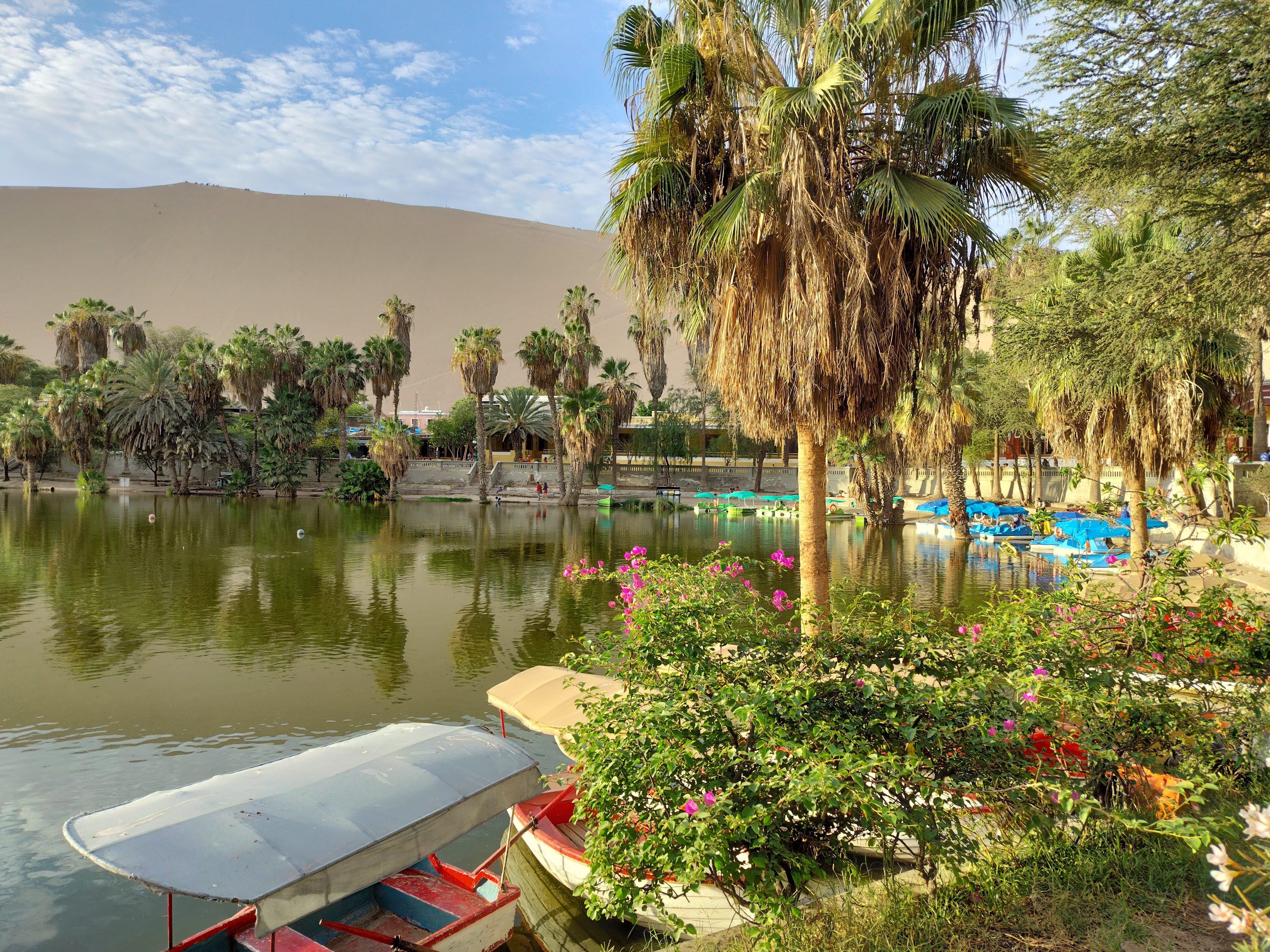 遊覧飛行後は真っ白な砂丘に突如現れるペルーのオアシス 「ワカチナ湖」へもご案内‼