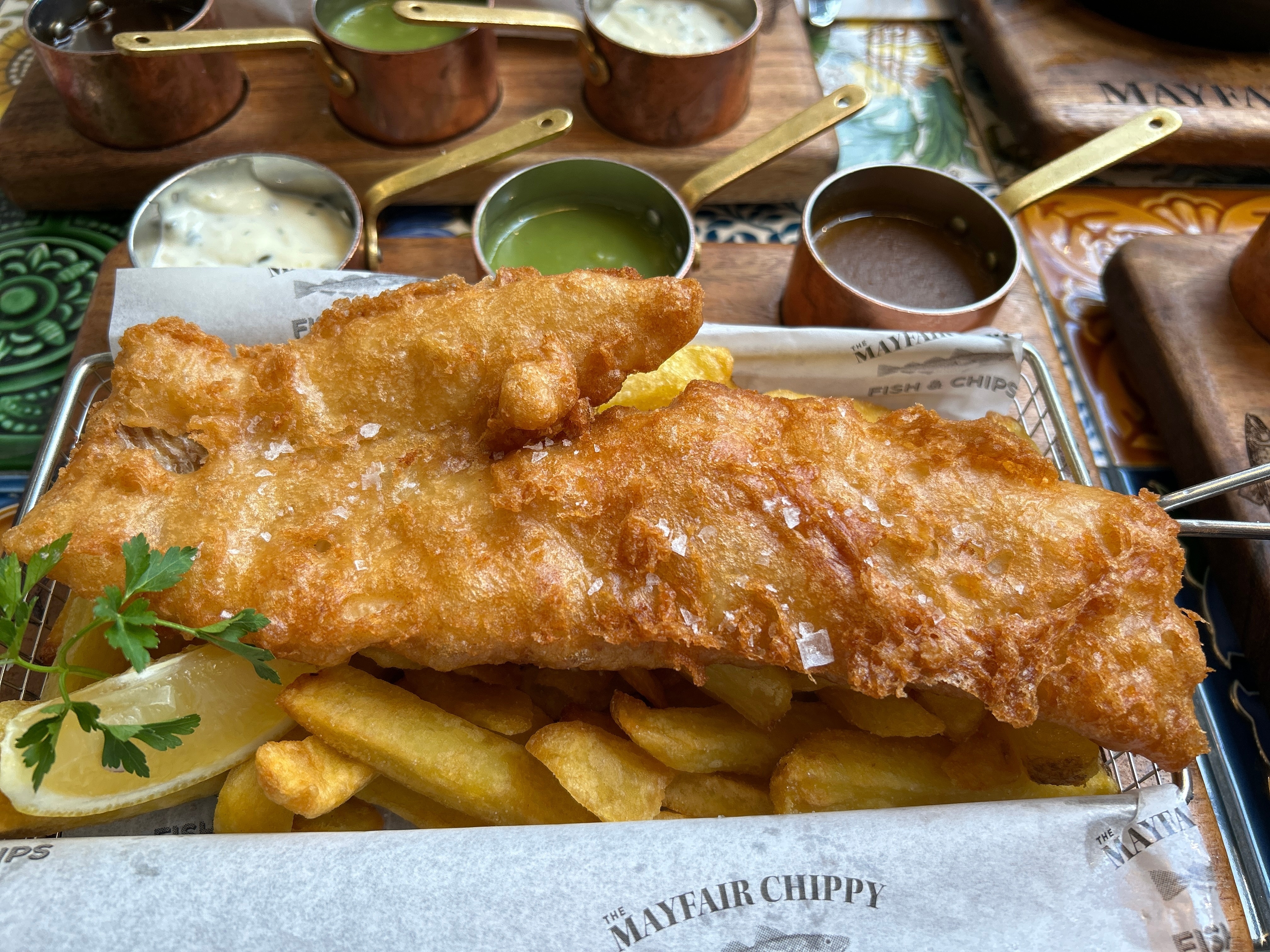 「メイフェアチッピー」で、英国の伝統的なフィッシュ&チップスが楽しめます!