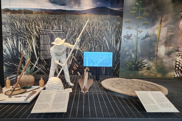 テキーラとメスカルに関する展示・歴史解説エリアをご案内 |