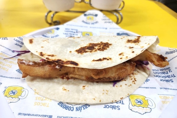 まずは、意外とあっさりとした魚フライのタコスを生ビールと共にお楽しみください。