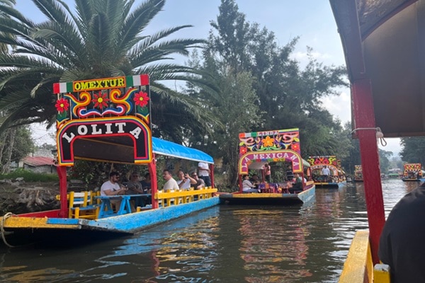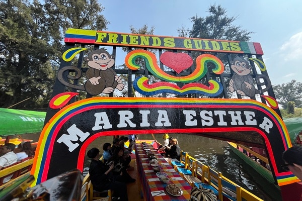 色鮮やかな トラヒネラ と呼ばれる伝統的なボートに乗り、ゆったりと運河を進めば、メキシコならではの陽気な雰囲気を満喫できます。