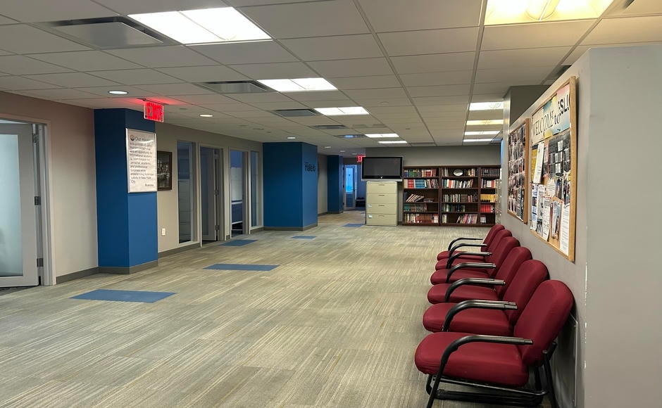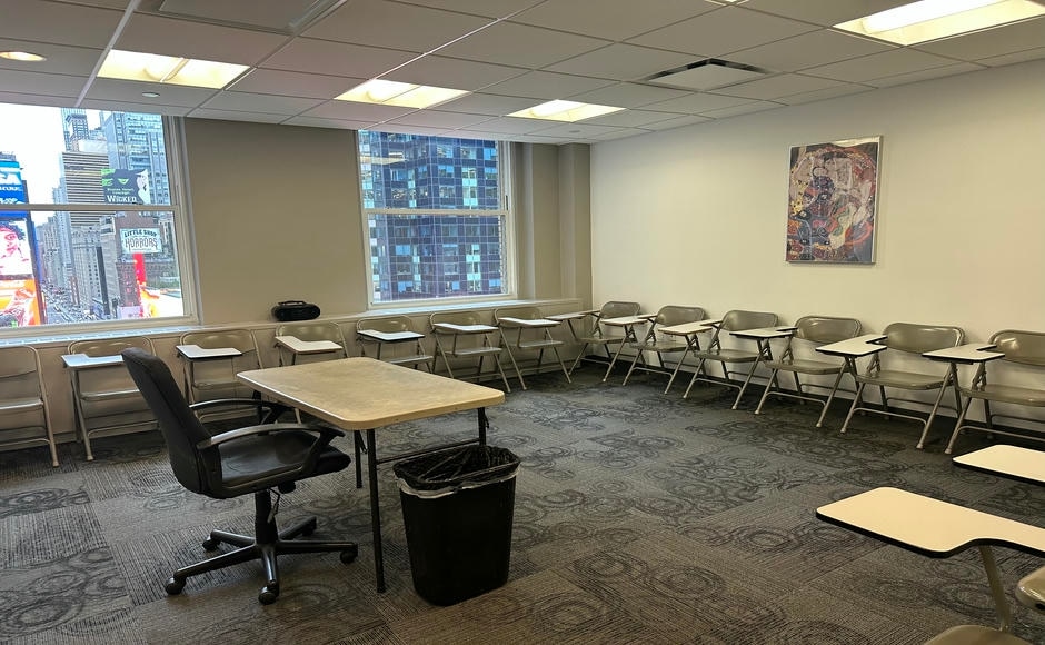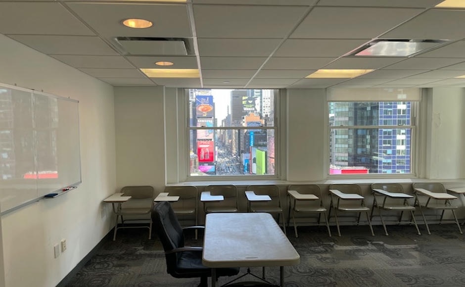 ・会場となる語学学校は、タイムズスクエアに位置する建物内にあります。建物の構造上、教室やスペースによって、外の様子の感じ方には違いがあります。