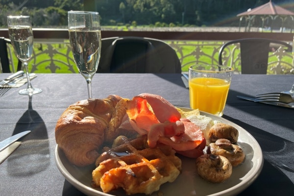 フライト後に、有名なワイナリーでいただくスパークリングワイン付の豪華な朝食付き