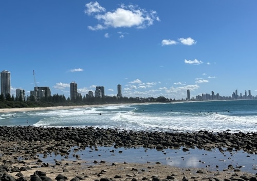 その後はサーファーにも人気のバーレーヘッズで、青空の下をゆったりお散歩。おしゃれなカフェや雑貨屋さんを見たり、ビーチでのんびり休憩したり、過ごし方はさまざまです。
