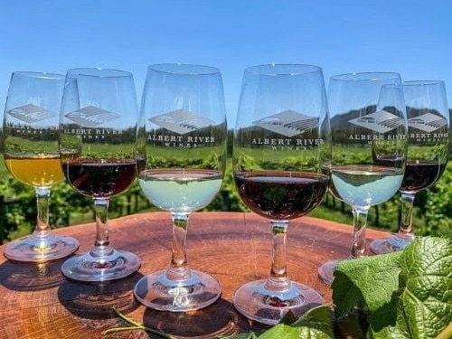アルバートリバーワインズ / タンボリンの⾃社農園で収穫した葡萄と、州内の高品質な葡萄をブレンドさせた、独⾃の⾵味を持つ6種類のワインテイスティングをお楽しみください。 |