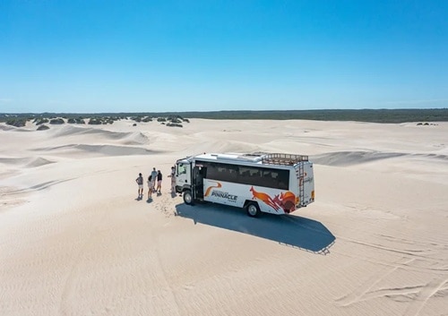 荒野の墓標ピナクルズへ向かう1日ツアー! ●○動物好きにはたまらない体験満載○●のカバシャムワイルドライフパークにて、コアラ、カンガルー、ウォンバットといったオーストラリアならではの動物達とのふれあいをお楽しみ下さい。 ロブスターの産地セルバンティスで昼食後は、☆待望のピナクルズへ☆ 気の遠くなるような年月をかけてできたこの自然の創造物は、まるで他の惑星に降り立ったような錯覚さえ覚えさせます。さらに黄色砂漠のピナクルズとは異なった、‘真っ白い’ランセリン砂丘にて4WD体験&砂すべりもできる遊び心満載ツアーへ是非ご参加下さいませ。