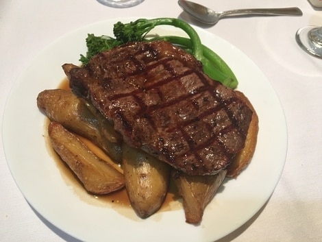 夕食のメインをビーフステーキか魚からお選びいただけます