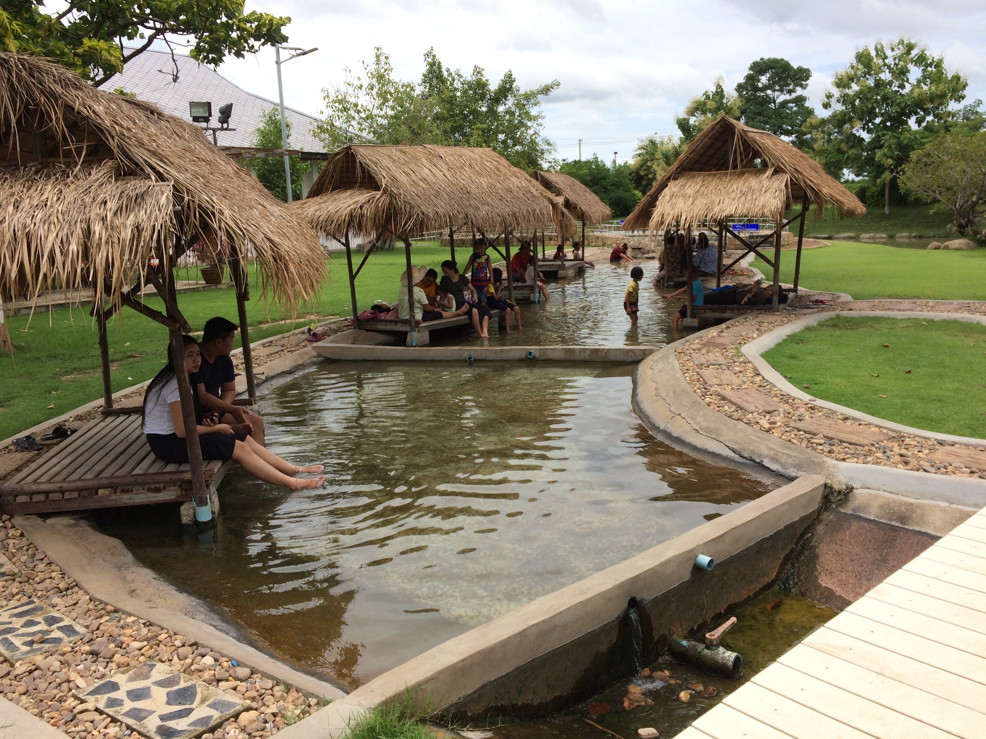 足湯 (無料)、大浴場 (50バーツ)、個室浴場 (入浴料30バーツ+個室使用料50バーツ) 貸タオルなどもあります |