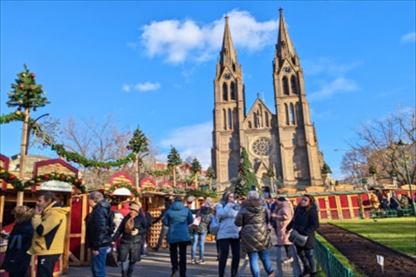 聖リュドミラ教会が美しい地元の方が多く訪れる「平和広場」のプラハ市内中心部から少し離れたヴィノフラディ地区に位置し、地元の人々に愛されている、アットホームな雰囲気が特徴です。規模は小さいですが、その分、観光客でごった返すことが少なく、穏やかで落ち着いた雰囲気の中でクリスマス気分を味わえます。