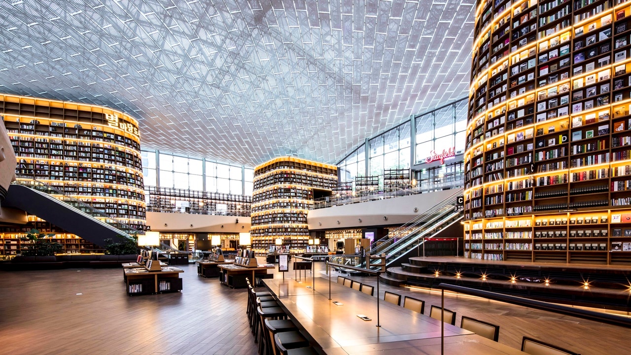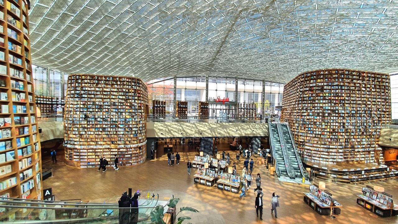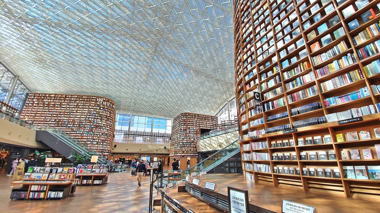 ソウルの新しい観光地として成長しているピョルマダン図書館!ここは約850坪規模で7万冊の本が置かれており合計2,800㎡(約850坪)複層で構成されています。13mの高さの本棚のほのかな明かりが空間全体を優しく包み込む快適な書斎をコンセプトに、ノートパソコンの操作が可能なテーブルもあってソウル市民の憩いの場となっています。