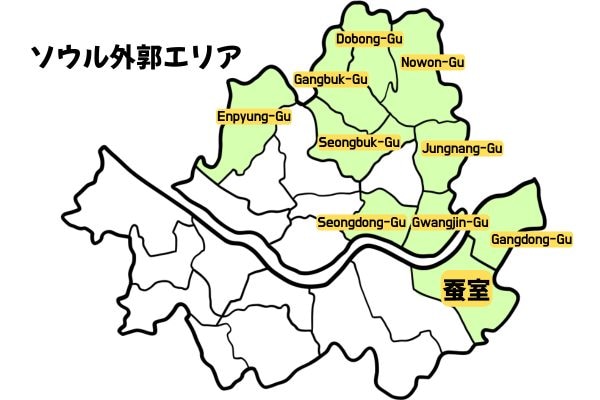 英語表記:Songpa-gu, Gangdong-gu, Gangbuk-gu, Nowon-gu, Seongbuk-gu, Dobong-gu, Jungnang-gu, Gwangjin-gu