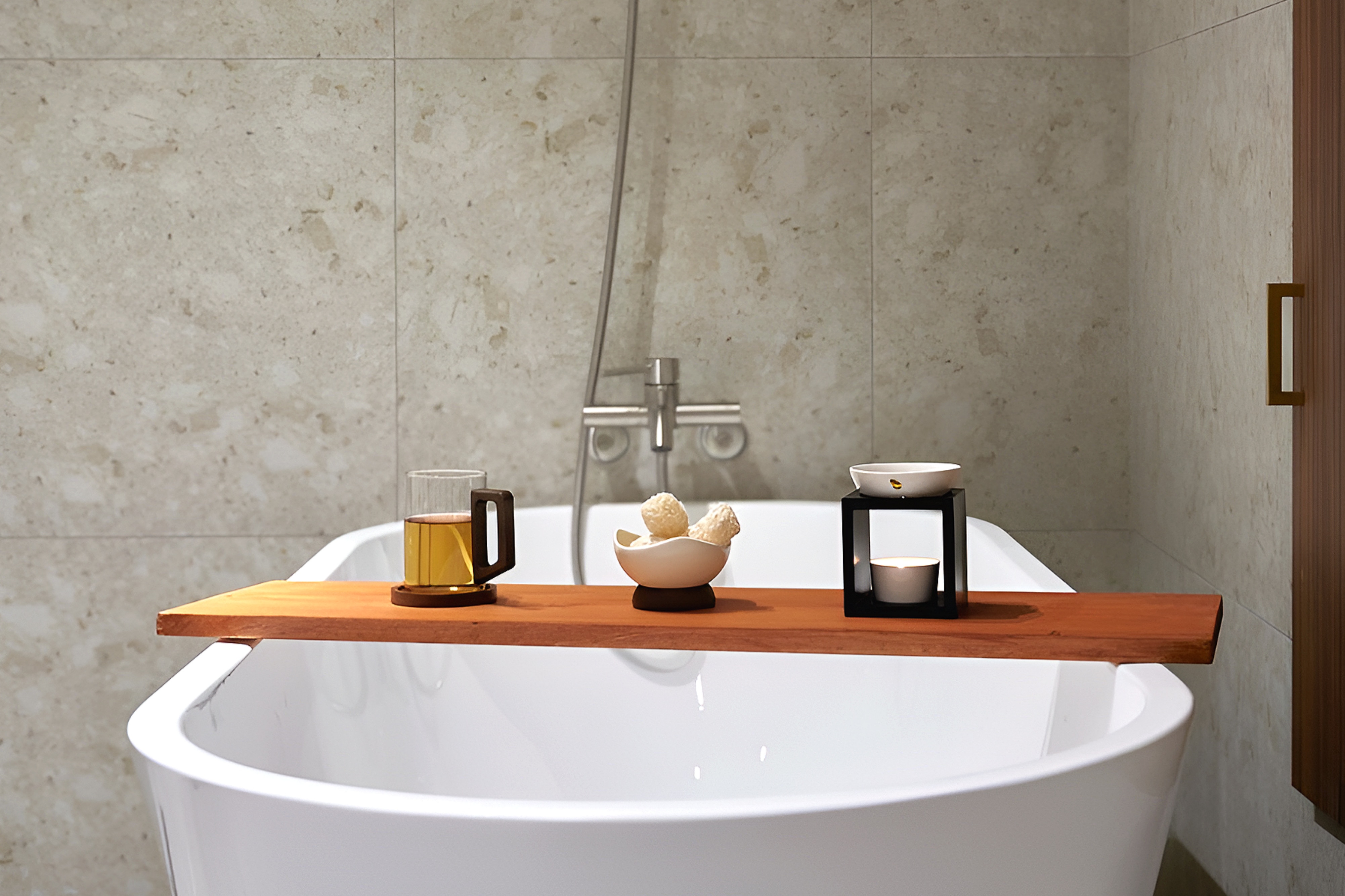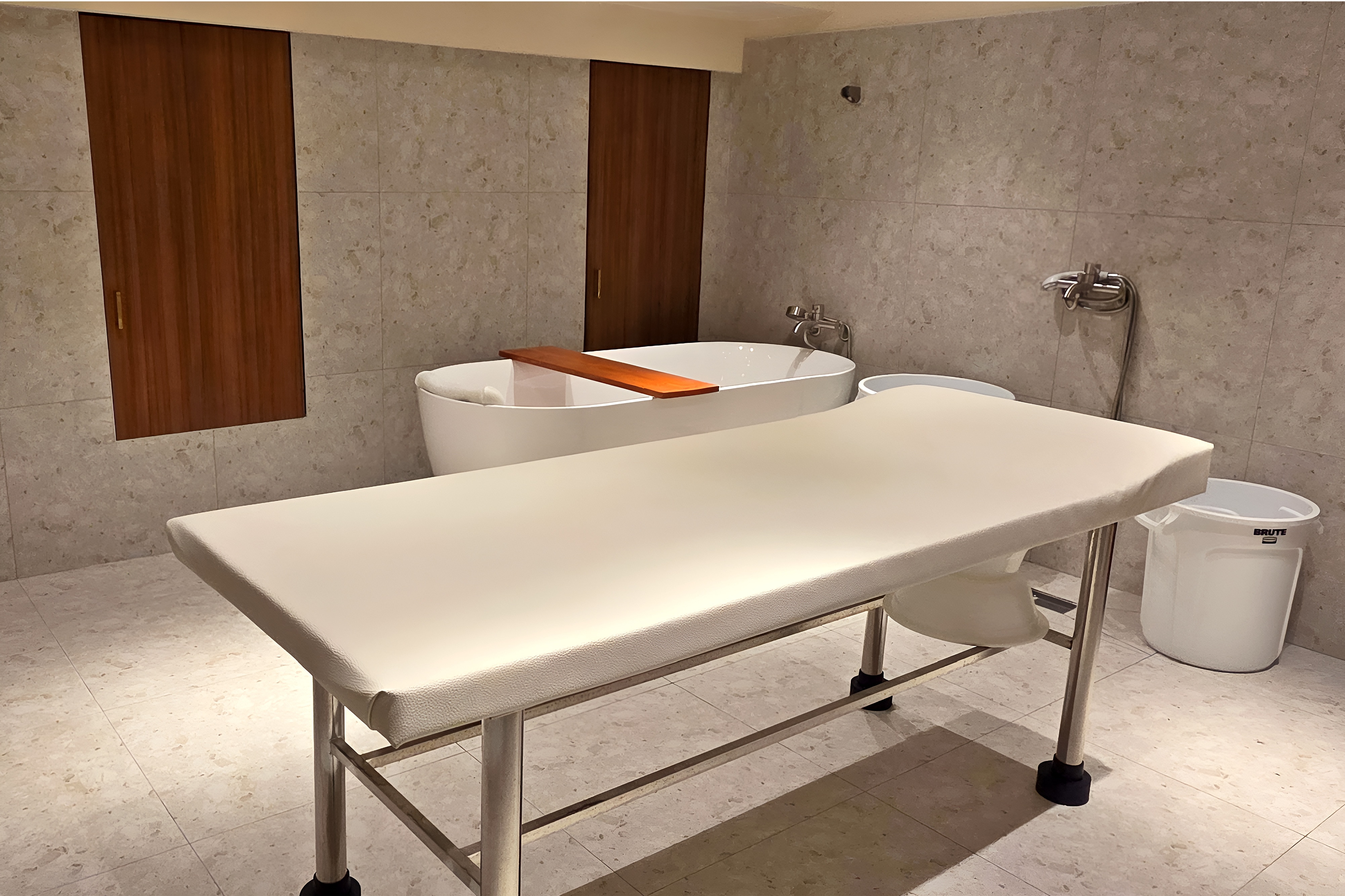 温かいお湯に浸かり、体の緊張をゆっくりとほぐします。フェイシャルクレンジングと保湿パックで肌のキメを整え、あかすりで古い角質をやさしく取り除きます。フットスクラブの後、ミルクトリートメントで全身を心地よく仕上げます。