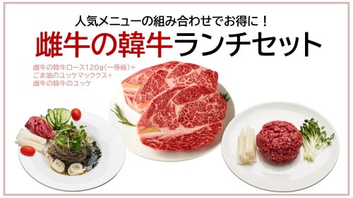 - [平日]ランチセット 韓牛ロース(120g)+ごま油ユッケマッククス+ユッケ