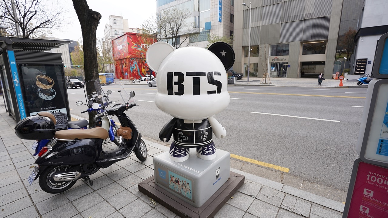 大人気K-POPグループの軌跡を巡るツアーです。ミュージックビデオのロケ地や世界的アーティストたちが来韓公演を行なったソウルオリンピック主競技場などを日本語ガイドと巡ります。2015年に江南の清潭洞(チョンダムドン)に、”韓流スター通り(K-Star ROAD)”が完成しました。POPを代表するグループのクマの形をした17体のカンナムドルが約1kmに渡り並んでいます。メンバーがよく利用した油井食堂(バンタン食堂)でお食事を。(個人払いになります。)