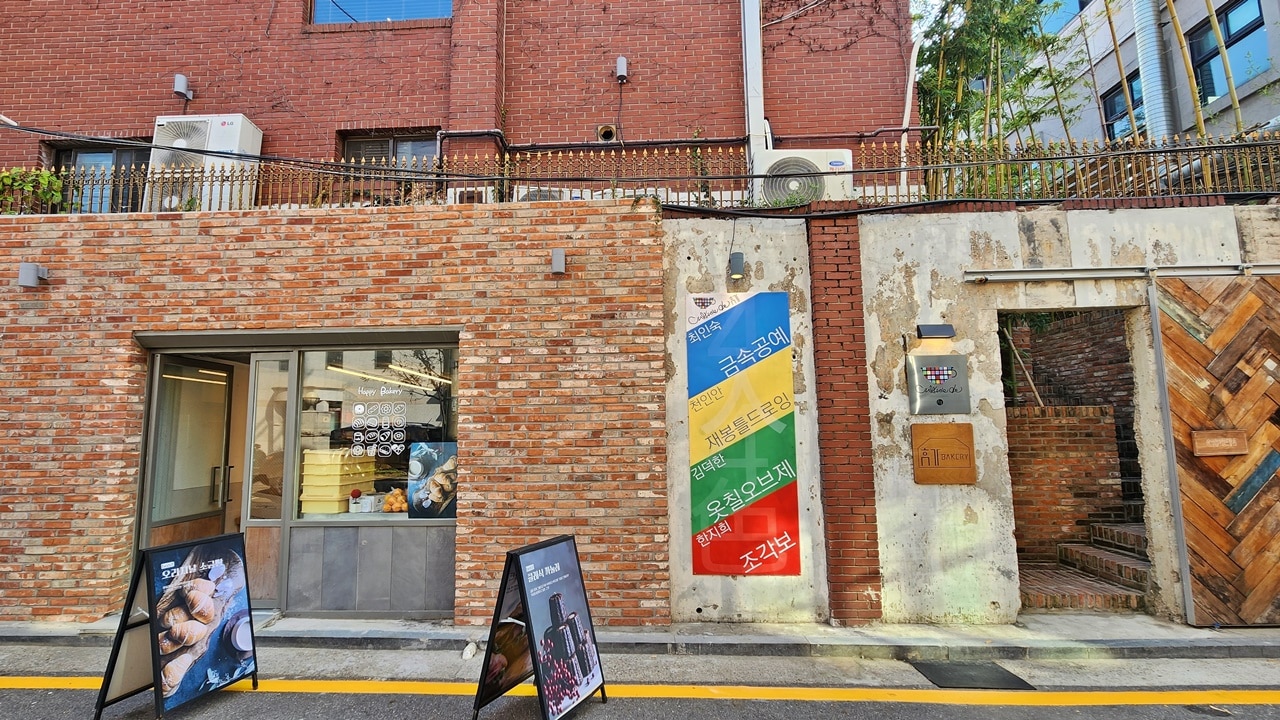 雰囲気のある店内には、芸術品と、世界各国から訪れたファン達の署名が残されています。 現在韓国で人気のある「塩パン」が有名なカフェです。
