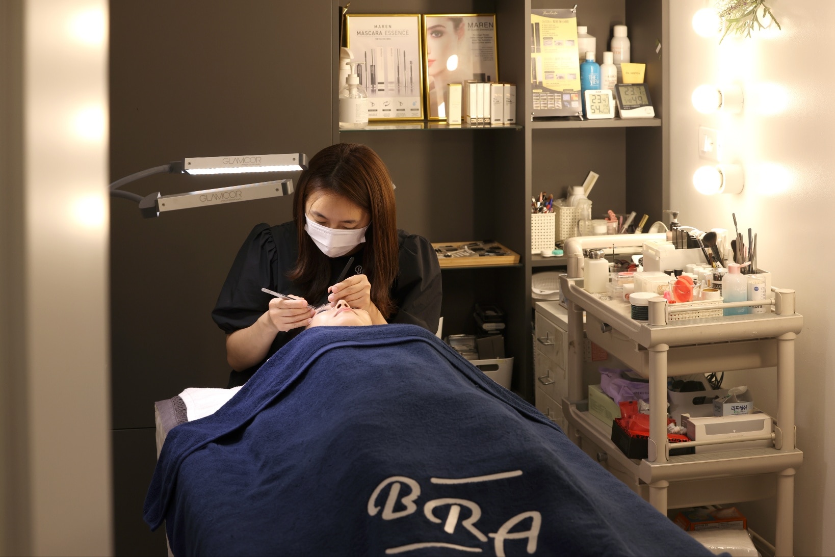 カン・ユリ院⻑が独⾃に開発したK-YURI機器を使⽤したスペシャルケア。顔の筋⾁をほぐしながら、