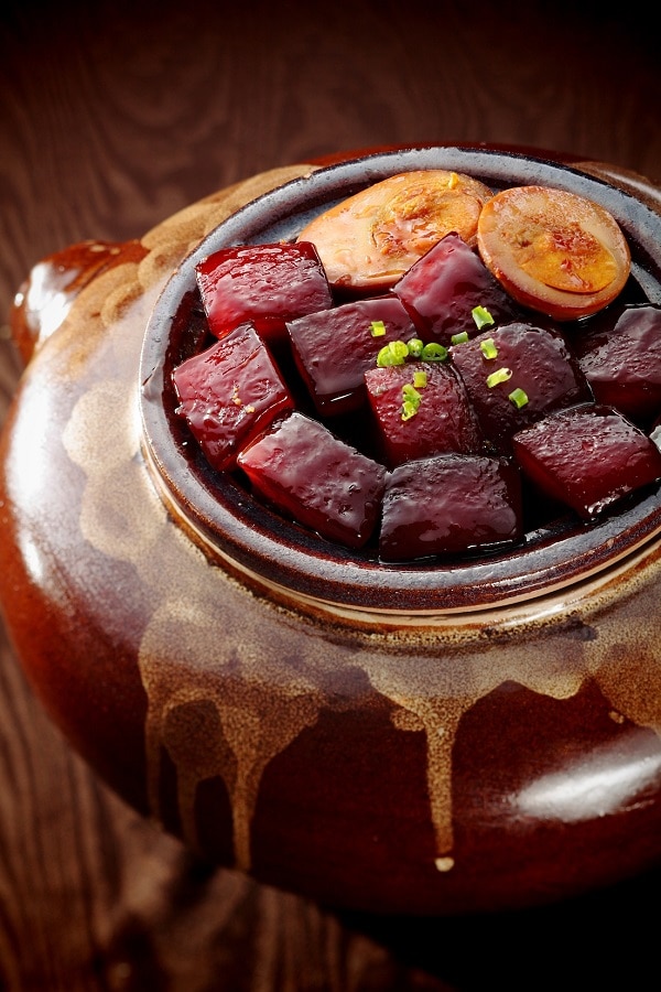 桂魚の揚げもの甘酢和え/江南風豚肉の角煮 |