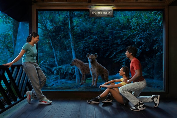 専用トラムに乗って、ライオンやゾウ、ヒョウなどの野生動物たちが自然に近い環境で過ごす姿を間近に観察。暗闇の中で動き出す動物たちの息づかいは、まさにここでしか味わえない特別な体験です。