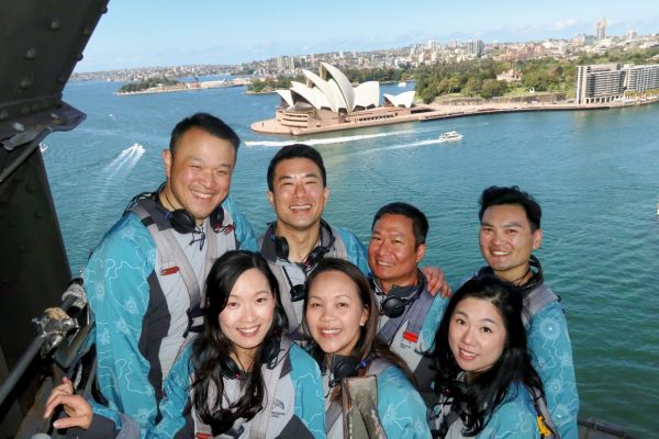 英語ガイド、ブリッジクライムオリジナルキャップ、グループ写真