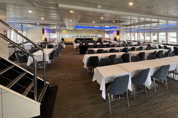 お食事は船内で調理されたバラエティー豊富なお料理をバッフェ形式でご用意。手軽に絶景とランチを楽しめるクルーズです。