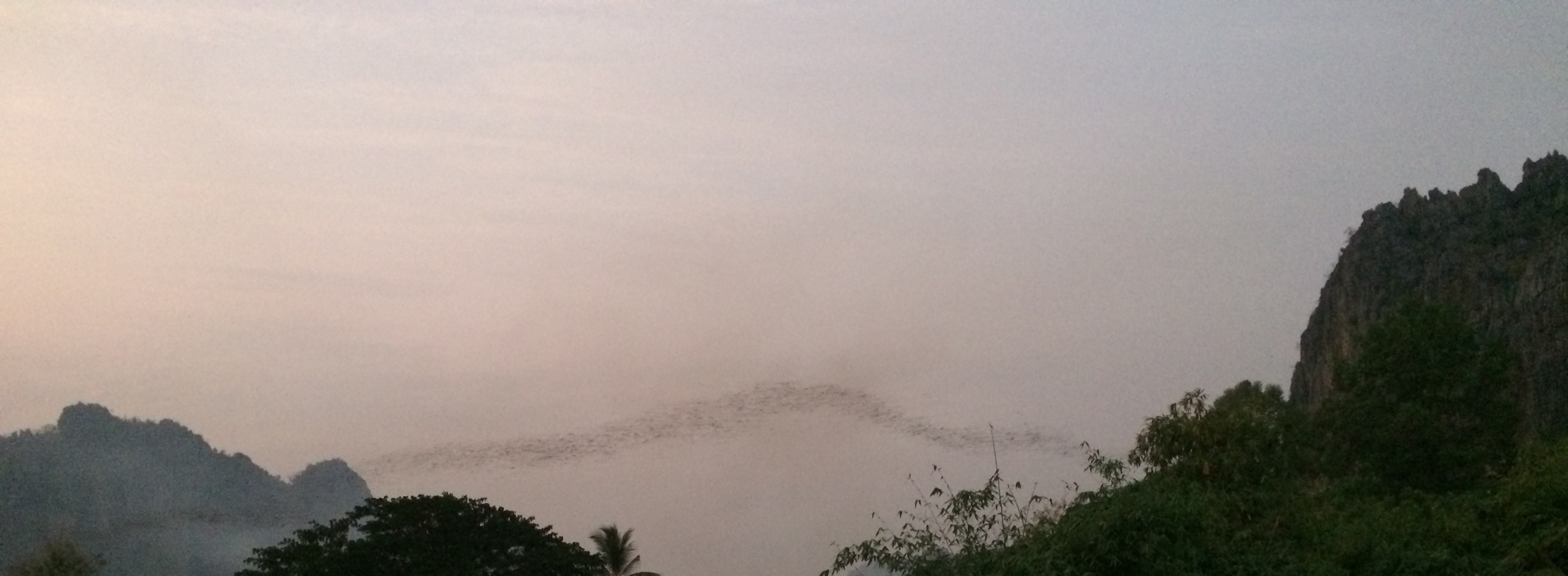 石灰岩の絶景と洞窟寺院、そして夕暮れの空を埋め尽くすコウモリの大群―感動の半日旅。