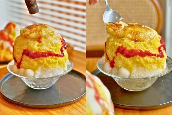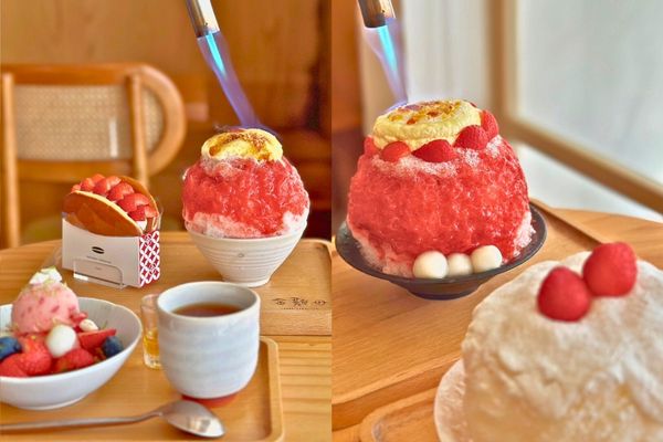 金雞母イチ押しの「燒冰(焼き氷)」は、フルーツやティーテイストのきめ細やかなかき氷の上に、ブリュレを乗せてバーナーでほんのり焼き色を付けた、他では味わえない新感覚の台湾スイーツ。味も見た目も楽しめる一品です。