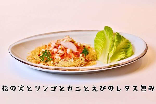・松の実とリンゴとカニとえびのレタス包み
