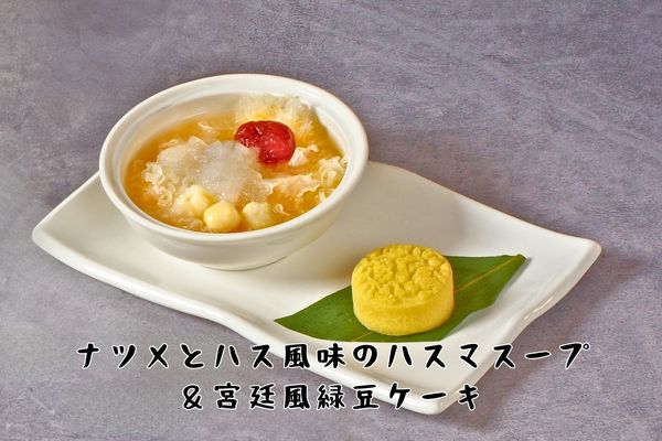 ・ナツメとハス風味のハスマスープ・宮廷風緑豆ケーキ