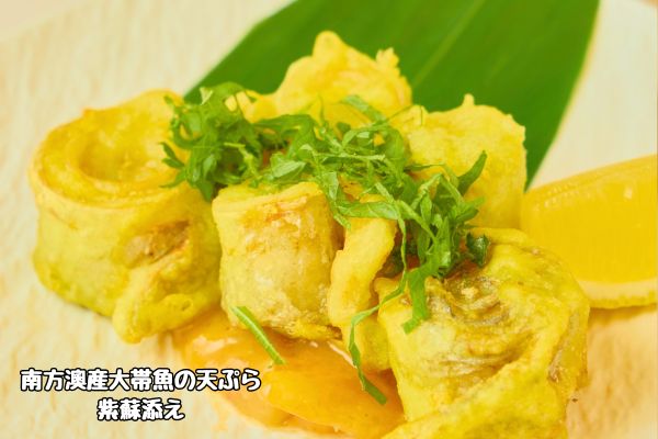 • 南方澳産大帯魚の天ぷら、紫蘇添え