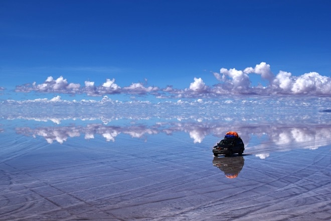 雨季(11月~4月)には水が貼ることにより「天空の鏡」が出現し、空を歩いているような上下対象の不思議な光景を生み出します!