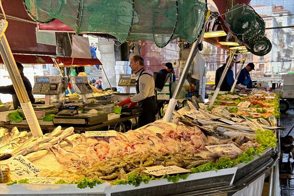 リアルト橋や魚市場、マルコポーロの家があったと言われる地区を散策 |