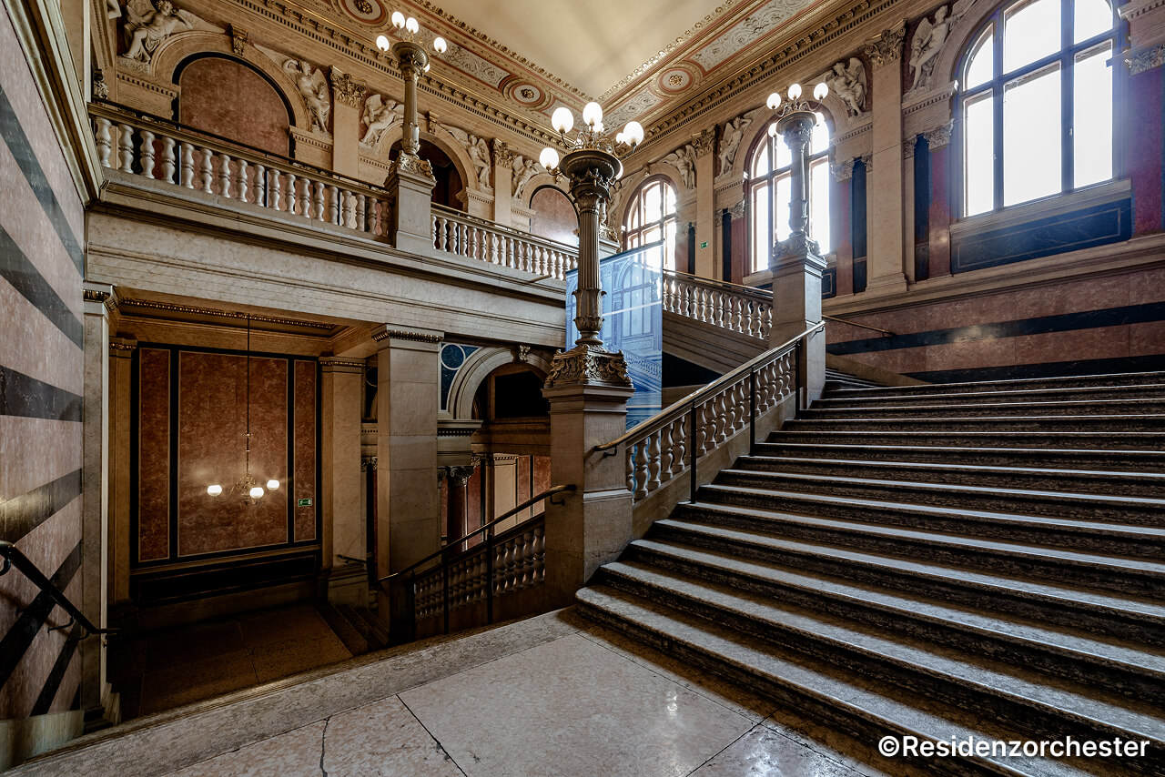 メイン会場である旧証券取引所は、楽友協会や国会議事堂も手がけたテオフィル・ハンセンにより設計されたネオ・クラシック様式の宮殿建物です。1874~1877年に建てられたウィーンの美しい宮殿ホールで美しい音楽の調べをお楽しみください。