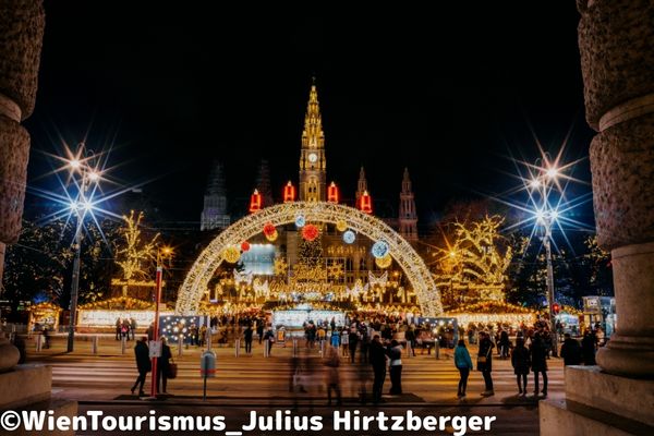 ウィーンで最も有名なクリスマスマーケットがウィーン市庁舎前広場前で開催されるRathausplatzのマーケット。毎年、色々な州から選ばれる大きなクリスマスツリーが最大の見どころです。たくさんの小屋が立ち並び見ているだけで楽しくなるクリスマスマーケットでは、温かい飲み物『プンシュ』も楽しむことができます。プンシュはシナモンなど数種類のスパイスを組み合わせて果汁やワインなどのお酒に加えて作られるクリスマスシーズンならではの飲み物です!