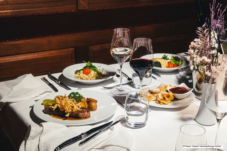 ※含まれるもの:ショー、ディナー(パンとスプレッド/前菜:オーストリア産ビーフタルタル/メイン:ローストビーフ、ロースト玉ねぎ載せ、ポテト添え/デザート)