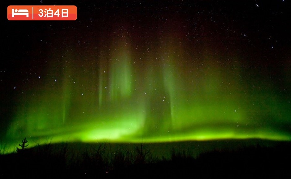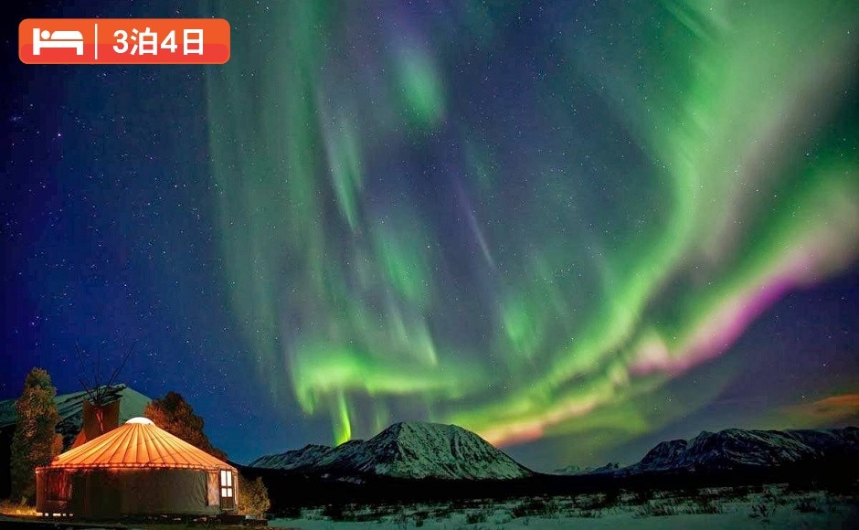 料金に含まれるもの:ホテル3泊、ガイド(日本語ガイド、または英語ガイド)、ホワイトホース空港~ホテルの往復混乗送迎(復路はホテルのシャトルバス利用)、オーロラ観賞3回、鑑賞中ホットドリンクとスナック、ホワイトホース滞在中の防寒具