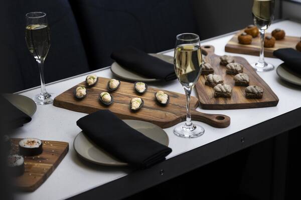 フィヨルドの壮大な景色を眺めながら、ニュージーランド産のスパークリングワインで乾杯。地元産の食材を贅沢に使ったシェフ自慢のお料理に舌鼓を打ちながら、特別なひとときをご満喫ください。
