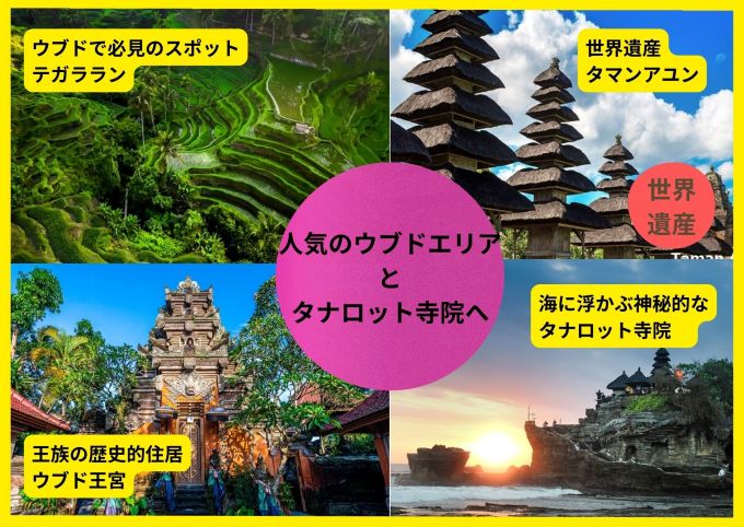2つの世界遺産+湖に浮かぶウルンダヌブラタン寺院と人気のタナロット寺院を巡る充実の1日!