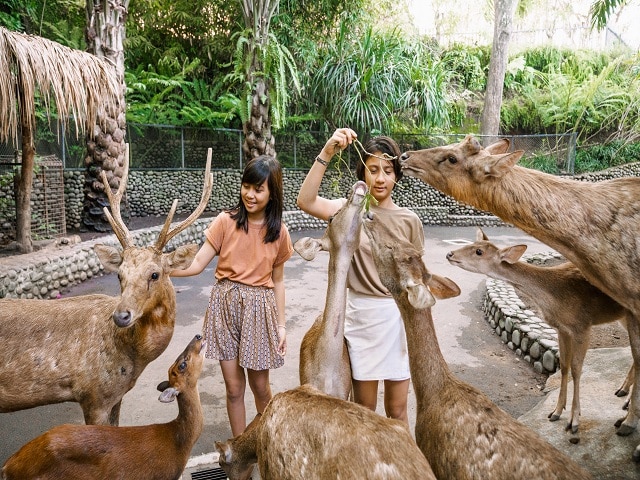バリズーではインドネシア特有の動物(コモドドラゴンやオランウータンなど)以外にも沢山のかわいい動物達が暮らしています。直接動物たちへご飯をあげたり(別途有料)も体験することができるので、より近くで動物達を観察できます。