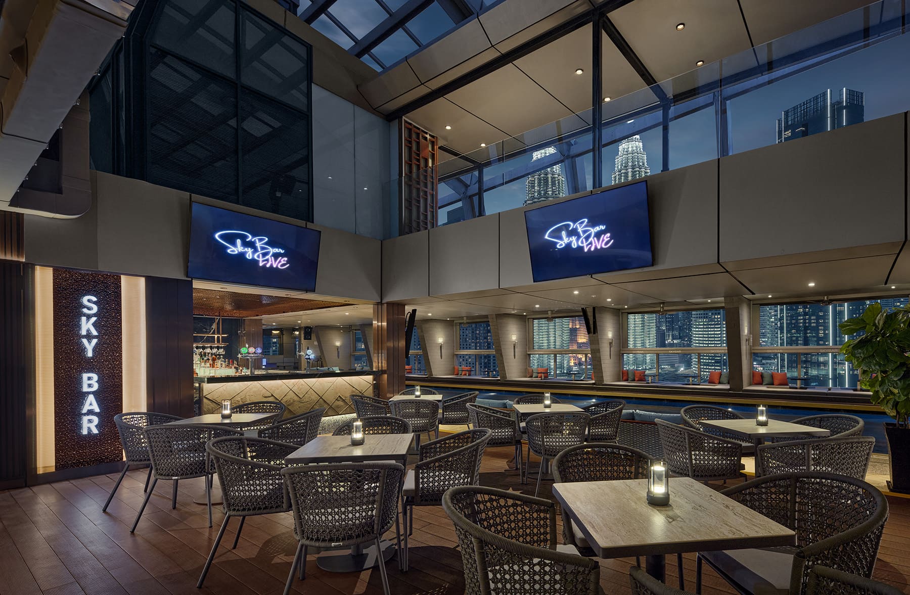 トレーダースホテルの最上階に位置するスカイバーからクアラルンプールで最も有名な「ペトロナスツインタワー」の夜景を満喫できます。