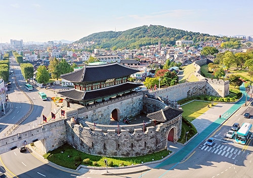 世界遺産に登録された壮大な水原華城の城郭を散策しながら、日本語ガイドの分かりやすい解説とともに、水原が誇る深い歴史と美しい景観をご堪能いただきます。感性あふれる行理団(ヘンニダン)キルへ。個性豊かなカフェや話題のグルメ、趣のある路地が並ぶエリアをゆったり散策し、旅の楽しさを存分に味わえます。 続いて、人気ドラマの水原ロケ地巡り。名シーンの舞台を実際に歩きながら、心に残る特別な思い出をお作りください。