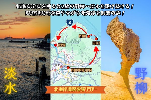 台北の人気観光地を効率よく巡る北海岸満喫ツアー!午前中は奇岩が織りなす絶景「野柳地質公園」へ。象徴的なクイーンズヘッドは必見です!その後、活気あふれる「金山老街」で食べ歩きやレトロな雰囲気を満喫。午後はバスで風光明媚な北海岸沿いを走り、歴史ある「淡水老街」へ。到着後は現地解散となり、夕暮れ時の淡水老街を自由散策。淡水での夕食や天気が良ければ夕焼け観賞もおすすめです。台北駅までは淡水から台北MRT淡水信義線で一本なので、戻りのアクセスもとても便利。限られた時間で北海岸の魅力をたっぷり味わいたい方におすすめです!