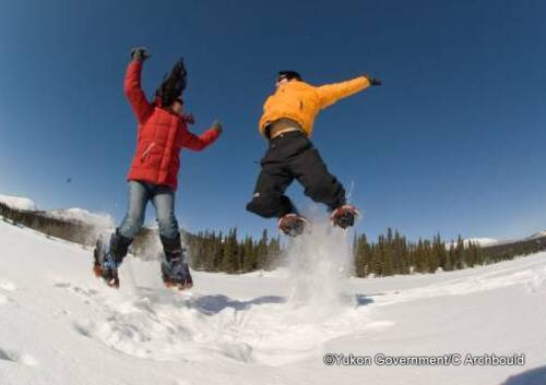 ホワイトホースに広がる雄大な自然の中をスノーシューズを履き、散策。運が良ければ、キツネや野ウサギなど