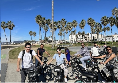 ロサンゼルスの人気ビーチエリアをEバイク(電動自転車)でサイクリング