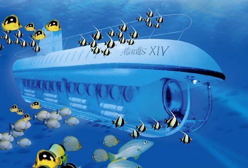 潜水艦アトランティス号はワイキキ沖から潜水をスタート。ハワイ大学が珊瑚礁研究を目的として沈めた「ピラミッド」や日本でデザインされた人工珊瑚礁、マグロ漁船の沈没船セント・ペドロ号を通過します。 これらの周辺にはカラフルな熱帯魚が群がり、冷房のきいた快適な艦内から海の生物のありのままの姿を見ることができます。9時から15時まで1時間毎にダイブ(潜水)があるのでお好きな時間をお選びください。ゆったりと海中探検ツアーを楽しめます。