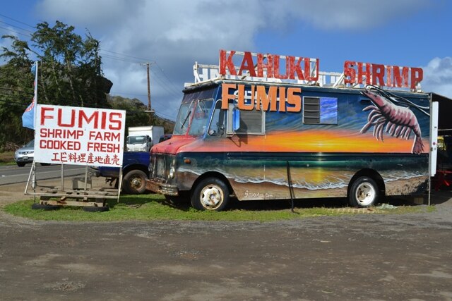 オアフ島巡りでハワイ名物や人気のFUMI'Sのシュリンプ・プレートランチを堪能