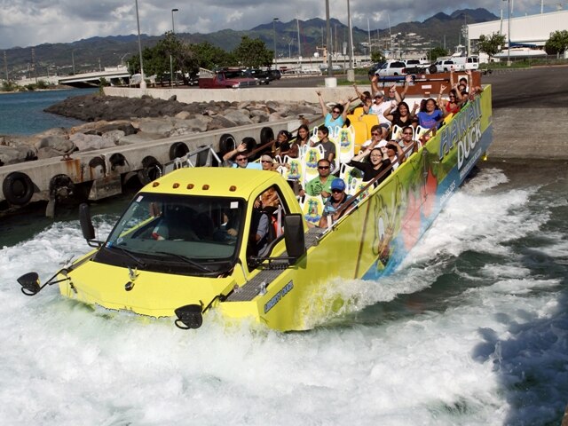 米軍が第二次世界大戦中に開発した上陸作戦用車両、通称「ダック」が70年のときを越え、最新技術で甦りました。オープンエアの高い車両でハワイの風を感じながらひと味違ったオアフ島観光をお楽しみいただけます。陸と海がひとつのツアーで両方を楽しめます。