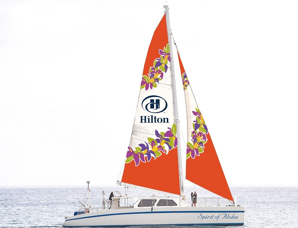 ヒルトンハワイアンビレッジから毎日出航するカタマラン船”スピリット・オブ・アロハ号”に乗ってワイキキ沖を快適クルーズ。